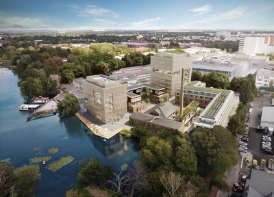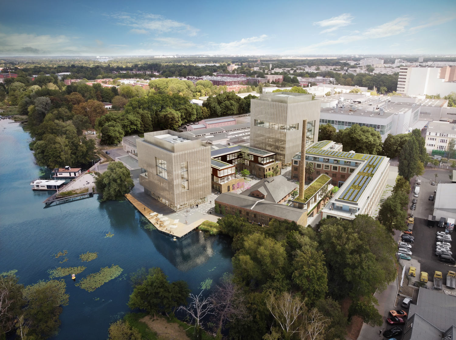 Das Projekt umfasst die Revitalisierung von fünf denkmalgeschützten Gewerbehallen und Industriegebäuden, die mit modernen Neubau-Erweiterungen versehen werden, um zugleich den historischen Charme zu bewahren und zeitgemäße Ansprüche zu erfüllen. Komplettiert wird das Ensemble von zwei Neubauten.