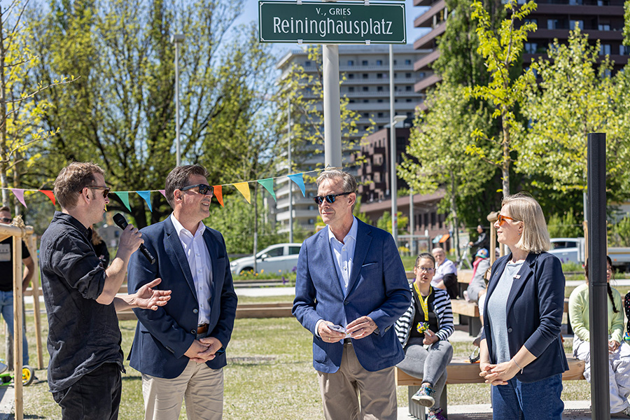 Nach der baulichen Fertigstellung und Öffnung des Reininghausplatzes im vergangenen Dezember (siehe auch “Reininghaus nimmt Platz”) haben die Stadt Graz und die ARE den neuen, rund 10.000 Quadratmeter großen Quartiersplatz bei frühlingshaften Temperaturen mit einem bunten Fest offiziell eröffnet.